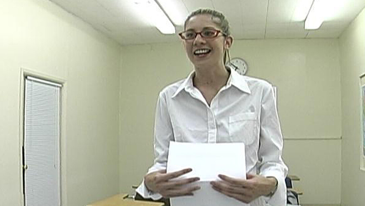 Blonde Lisa Marie fucking in the desk with her natural tits